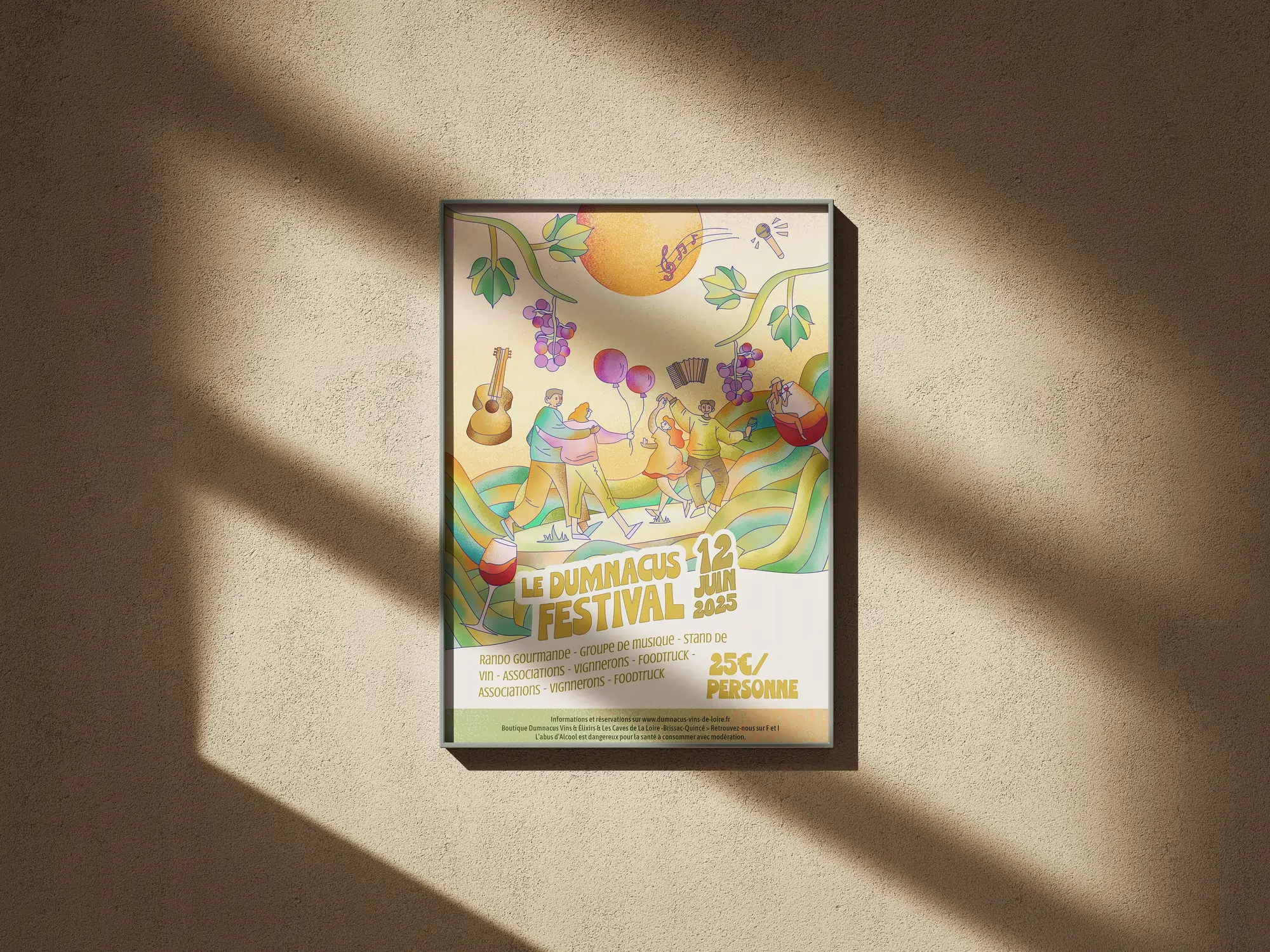 As the Dumnacus Festival was a new event, my role was to design the poster. The idea was to highlight all the themes of the festival: vineyards, hiking, and music.